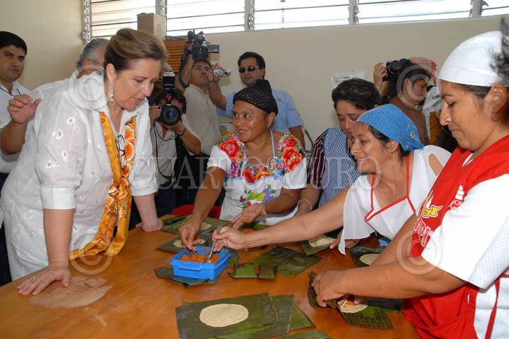 SAN JOSÉ TECOH, YUCATÁN 13OCTUBRE2006.- Durante un recorrido por el Centro de Desarrollo Comunitario de esta localidad, la secretaria de Desarrollo Social, Ana Teresa Aranda Orozco, hizo destacar la importancia de que las mujeres en condiciones de pobreza y marginación reciban más capacitación y oportunidades de desarrollo, con el fin de que puedan acceder a mejores condiciones de vida. FOTO: SEDESOL/CUARTOSCURO.COM