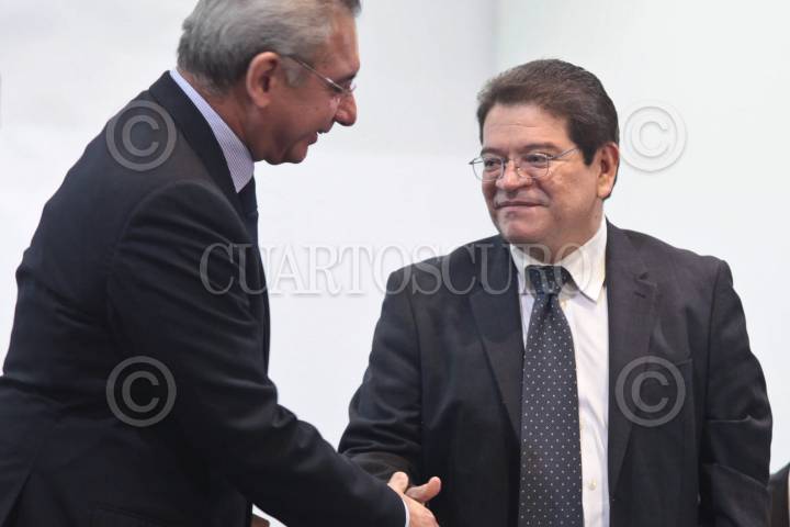 MÉXICO, D.F., 06SEPTIEMBRE2010.- Salvador Vega Casillas, secretario de la Función Pública y el presidente de la Comisión de Ciencia y Tecnología del Senado, Francisco Javier Castellón Fonseca al termino de su participación en el Foro: “Una agenda digital para transformar a México”. FOTO: CUARTOSCURO.COM