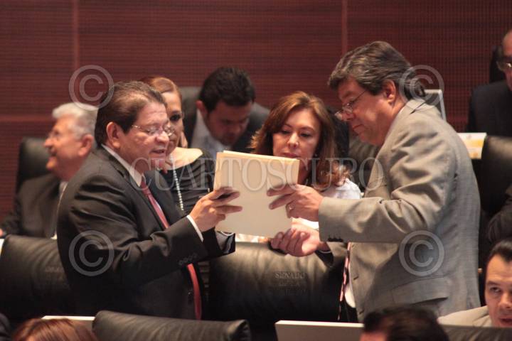 MÉXICO, D.F., 29ABRIL2011.- Los senadores Francisco Castellon Fonseca, Maria Elena Orantes, Beatriz Zavala y Guillermo Tamborrel, en la sesión del Senado de la República. FOTO: CUARTOSCURO.COM