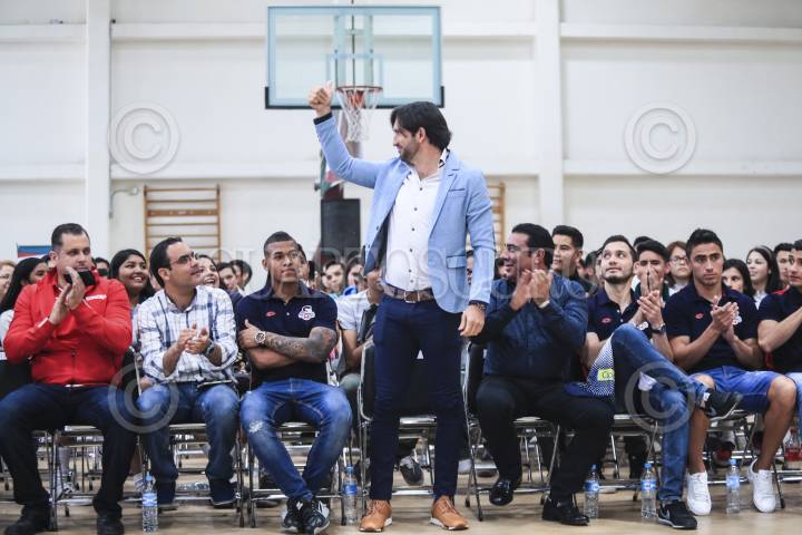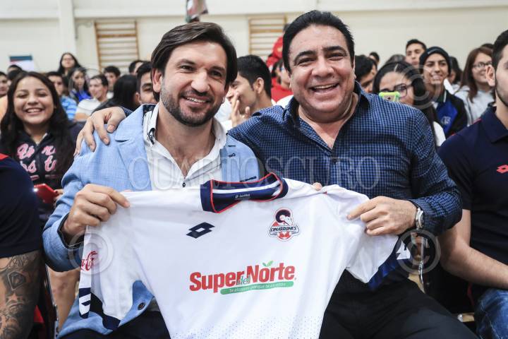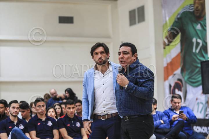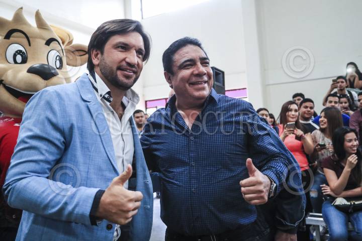 HERMOSILLO, SONORA, 03MARZO2017.- Servando Cabajal presidente de Super del Norte y Club de Futbol Cimarrones de Sonora, presentó al ex futbolista Kikin Fonseca, quien ofreció la conferencia ¨Gol Por Tus Sueños¨, dentro de las actividades llamadas LA Vedad Del Cristal que va orientada a prevenir las adicciones. FOTO: LUIS GUTIÉRREZ /NORTEPHOTO /CUARTOSCURO.COM