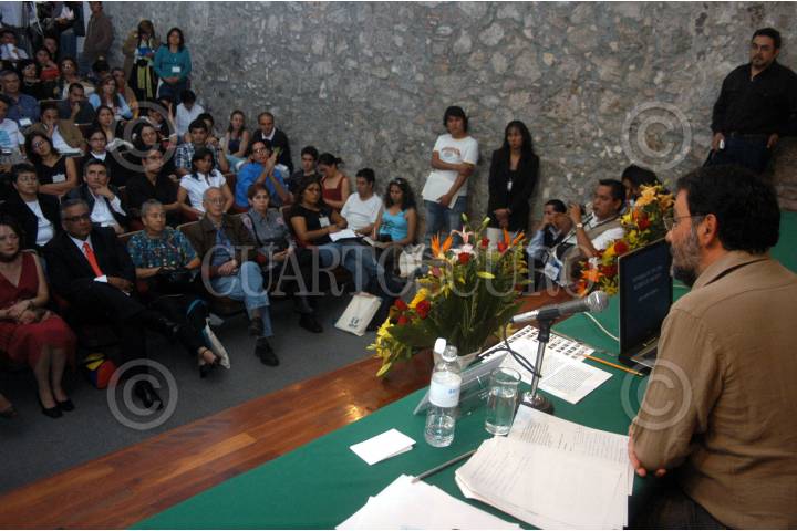 PACHUCA, HIDALGO 22AGOSTO2006.- Joan Fontcuberta, durante su conferencia magistral en la Fototeca Nacional de Pachuca dentro de las actividades del 30 aniversario de esta. FOTO: Guillermo Perea/CUARTOSCURO.COM