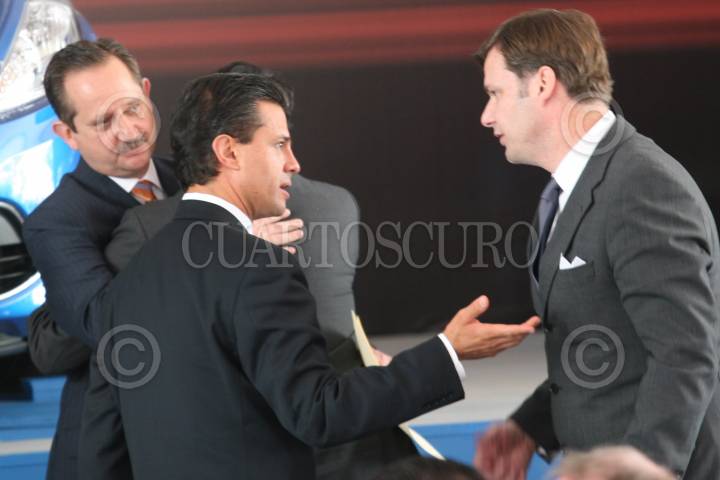 CUAUTITLAN ESTADO DE MÉXICO. 11MAYO2010.-Eduardo Serrano Berry, Presidente y Director de Ford Motor Company México, Enrique Peña Nieto, gobernador de esta entidad y Jim Farley, Vicepresidente de Mercadotecnia Global y de Operaciones de Norteamérica y Sudamérica de Ford Motor Company, encabezo la reinauguración de la planta Ford Cuautitlan, y el lanzamiento del Ford Fiesta 2011. FOTO: GUILLERMO PEREA/CUARTOSCURO.COM