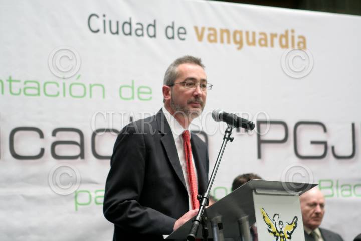 MÉXICO, D.F., 10MARZO2011.- Oscar Guerra Ford, comisionado presidente del InfoDF, durante la presentación de la aplicación para BlackBerry que permite a los usuarios utilizar el MP Virtual para presentar denuncias por delitos como fraude o robo sin violencia FOTO: MOISÉS PABLO/CUARTOSCURO.COM