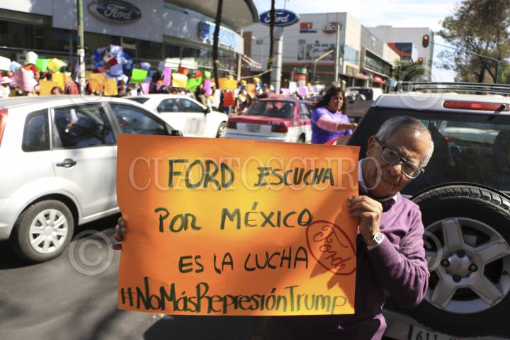 CIUDAD DE MÉXICO, 20ENERO2017.- Integrantes de organizaciones sociales y del partido Encuentro Social, se manifestraon frente a las instalaciones de la agencia de Ford en la colonia Doctores para mostrar su rechazo de la llegada de Donald Trump, como presidente de los Estados Unidos. FOTO: SAÚL LÓPEZ /CUARTOSCURO.COM