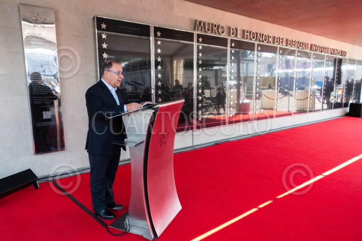CIUDAD DE MÉXICO, 16OCTUBRE2024.- Federico González Compéan, director de CIE México, durante la ceremonia donde fueron inscritos en el Muro de Honor del Deporte Motor en México los pilotos Enrique Contreras y Rubén Novoa González, que se realizó en el Autódromo Hermanos Rodríguez. FOTO: MOISÉS PABLO/CUARTOCURO.COM