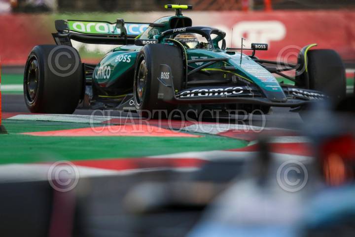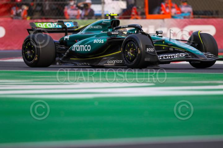 CIUDAD DE MÉXICO, 25OCTUBRE2024.- Fernando Alonso de la escudería Aston Martin durante la segunda práctica clasificatoria de la Fórmula 1 Gran Premio de la Ciudad de México en el Autódromo Hermanos Rodriguez. Carlos Sainz de Ferrari fue primero; Oscar Pirateo fue Segundo, y Yuki Tsunoda fue tercero. Sergio Checo Pérez quedó noveno esperando más fuerte para el segundo día de prácticas. FOTO: MOISES PABLO/CUARTOSCURO.COM