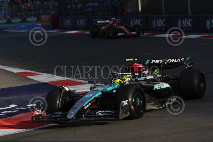 CIUDAD DE MÉXICO, 25OCTUBRE2024.- Lewis Hamilton de la escudería Mercedes durante la segunda práctica clasificatoria de la Fórmula 1 Gran Premio de la Ciudad de México en el Autódromo Hermanos Rodriguez. FOTO: MOISES PABLO/CUARTOSCURO.COM