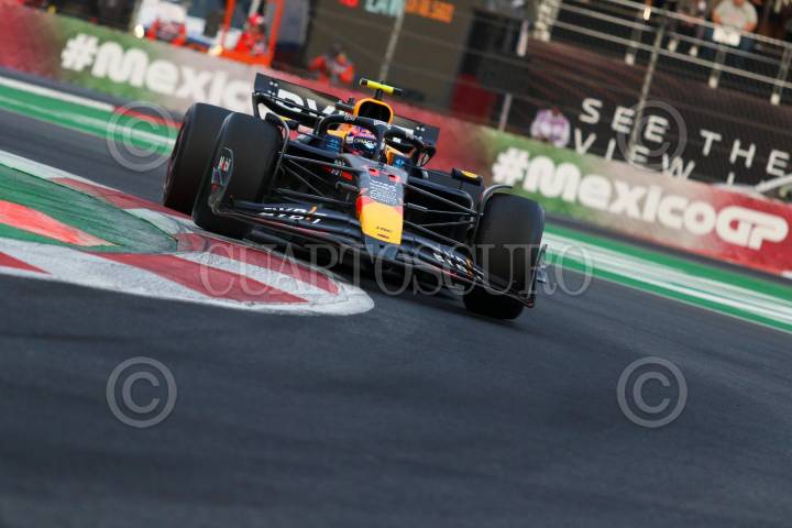 CIUDAD DE MÉXICO, 25OCTUBRE2024.- Sergio Checo Pérez no tuvo un buen día en las primeras pruebas de la Formula 1 del Gran Premio de México 2024, ya que quedo en noveno lugar en la segunda práctica del día, ante un abarrotado Autódromo Hermanos Rodríguez que espera que el tapatío llegue al podimum. FOTO: MOISES PABLO/CUARTOSCURO.COM