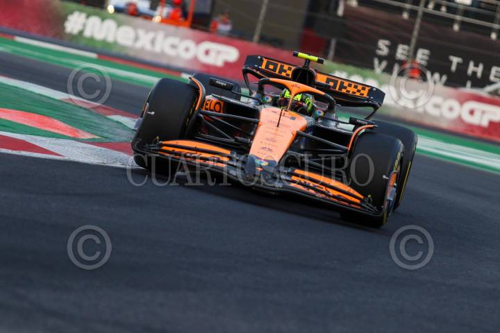 CIUDAD DE MÉXICO, 25OCTUBRE2024.- Lando Norris de la escudería McLaren durante la segunda práctica clasificatoria de la Fórmula 1 Gran Premio de la Ciudad de México en el Autódromo Hermanos Rodriguez. FOTO: MOISES PABLO/CUARTOSCURO.COM