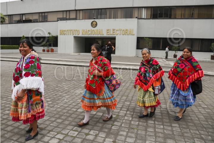 MÉXICO, D.F., 14MAYO2015.- Mujeres Mazahuas a la salida de la presentación del portal Observatorio de Participación Política de las Mujeres en México realizado en las instalaciones del INE. FOTO: SAÚL LÓPEZ /CUARTOSCURO.COM