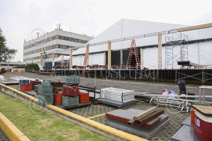 MÉXICO, D.F., 14MAYO2015.- Trabajadores instalan en los patios del INE carpas para habilitar oficinas alternas, cubiculos y sala de prensa previo a los comisios del próximo 7 de Junio. FOTO: SAÚL LÓPEZ /CUARTOSCURO.COM