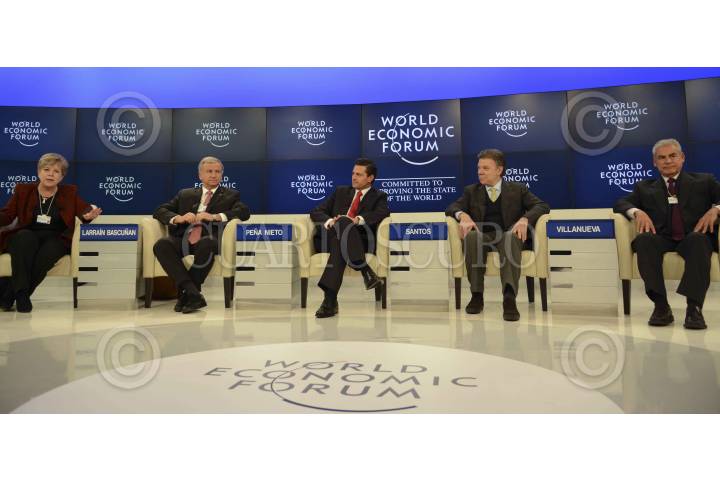 DAVOS, SUIZA, 23ENERO2014.- El Presidente Enrique Peña Nieto participó en la sesión interactiva titulada “La Promesa de la Alianza del Pacífico”, junto con el mandatario de Colombia, Juan Manuel Santos; el Presidente del Consejo de Ministros del Perú, César Villanueva; y el ministro de Finanzas de Chile, Felipe Larraín Bascuñán. FOTO: PRESIDENCIA /CUARTOSCURO.COM
