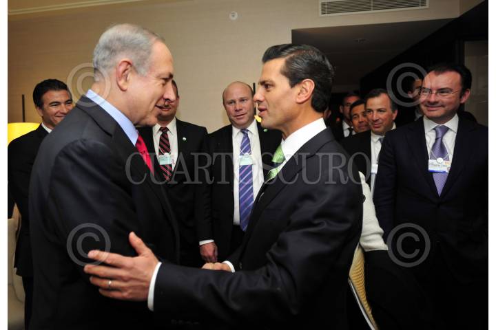 DAVOS, SUIZA, 24ENERO2014.- El Presidente de la República, Enrique Peña Nieto, sostuvo hoy un encuentro con el Primer Ministro de Israel, Benjamín Netanyahu, a quien invitó a visitar México. FOTO: PRESIDENCIA /CUARTOSCURO.COM