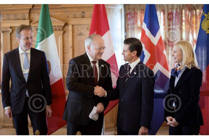 DAVOS, SUIZA, 22ENERO2016.- Enrique Peña Nieto, presidente de México, y su homólogo suizo Johann Schneider Ammann, presenciaron la firma de la Declaración Conjunta sobre el Inicio de las Negociaciones para la Revisión del Tratado de Libre Comercio entre México y los Estados de la Asociación Europea de Libre Comercio. FOTO: CUARTOSCURO.COM