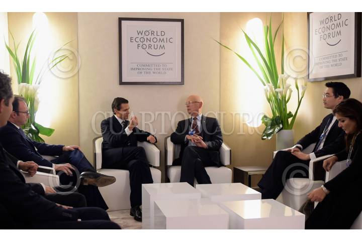 DAVOS, SUIZA, 22ENERO2016.- El Presidente Enrique Peña Nieto sostuvo una reunión con el Presidente Ejecutivo y Fundador del Foro Económico Mundial, Klaus Schwab, en el Centro de Congresos, sede del encuentro de los líderes económicos y financieros de todo el mundo. FOTO: PRESIDENCIA /CUARTOSCURO.COM