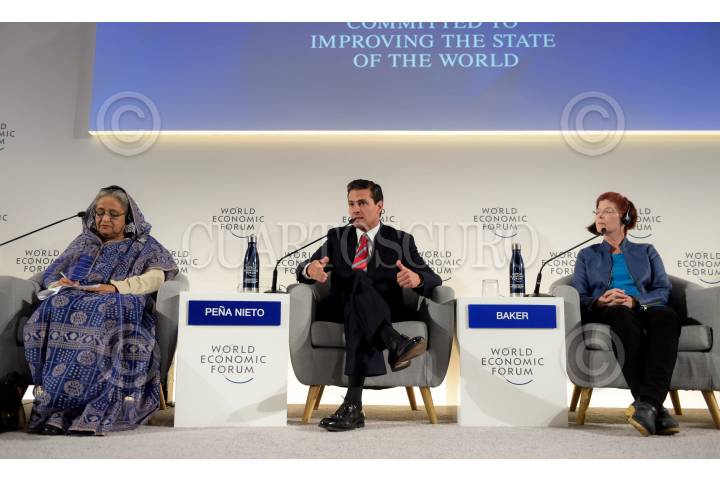 DAVOS, SUIZA, 23ENERO2014.- Durante la conferencia magistral “Transformando a México: sociedad, política y economía”, en el marco del Foro Económico Mundial, el Primer Mandatario, Enrique Peña Nieto, destacó que “estamos prestos y preparados para acometer los retos que impone el siglo XXI, estar a la altura de los mismos retos, y sobre todo, lograr que México descolle”. FOTO: PRESIDENCIA /CUARTOSCURO.COM