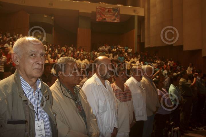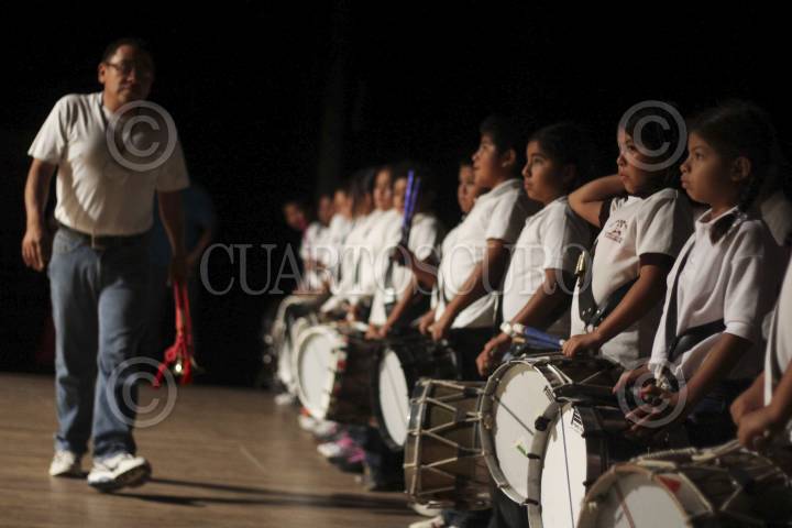 OAXACA, OAXACA, 04JUNIO2013.- Profesores de nueve secciones del Sindicato Nacional de los Trabajadores de la Educación (SNTE) que forman parte de la disidencia sindical participaron en el 2o Foro Regional sobre la Reforma Educación, mismo que se llevó a cabo en el teatro Álvaro Carrillo de la ciudad de Oaxaca. En la imagen jóvenes estudiantes del nivel primaria que integran una banda de guerra participan en este foro en donde se discute un tema importante acerca del futuro de la educación del país. FOTO: ARTURO PÉREZ ALFONSO /CUARTOSCURO.COM