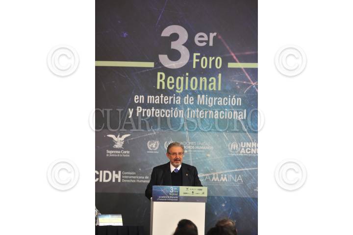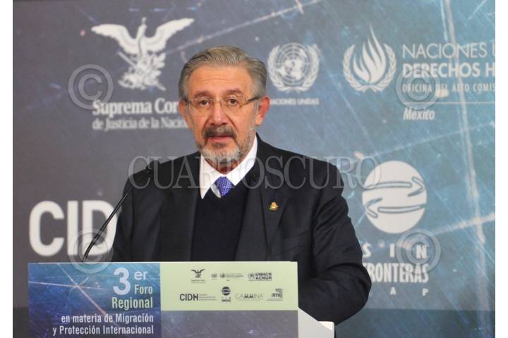 CIUDAD DE MÉXICO, 19ENERO2018.- El Ministro Luis María Aguilar Morales, Presidente de la Suprema Corte de Justicia de la Nación (SCJN) y del Consejo de la Judicatura Federal (CJF) durante la inauguración del 3er Foro Regional en Materia de Migración y Protección Internacional, efectuada en el Área de Murales del Alto Tribunal. FOTO: SCJN /CUARTOSCURO.COM