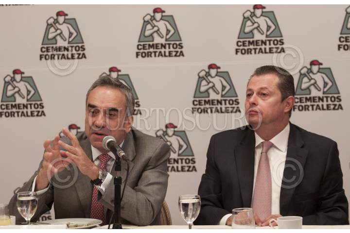 MÉXICO, D.F. 16OCTUBRE2012.- Antonio Taracena Sosa, director general división cemento y Eduardo Musalem Younes, director general de Elementia durante una conferencia de prensa en donde anunciaron la creacion de la empresa Cementos Fortaleza que empezará a producir un millón de toneladas que colocaran inicialmente en la zona centro del país; La sociedad esta formada por Carlos Slim y Antonio Del Valle la cual competirá con las principales empresas del ramo. FOTO: RODOLFO ANGULO /CUARTOSCURO.COM