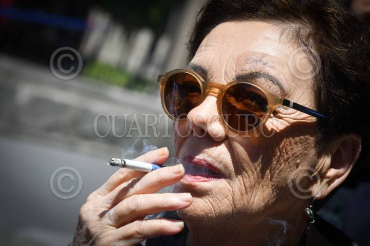 Graciela Iturbide, fotógrafa mexicana, fuma un cigarro previo a la inauguración de su exposición "Los que viven en la arena. Graciela Iturbide y el pueblo Comcáac” en el Museo Archivo de la Fotografía.