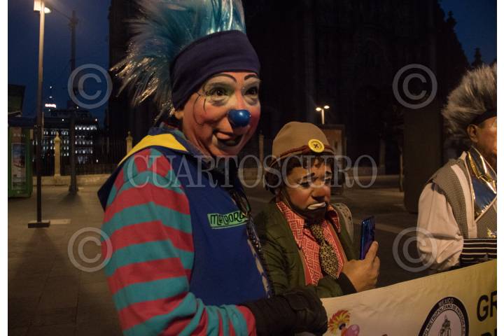 La organización Payasos A.C., que se manifestó para solicitar apoyo por ser uno de los grupos mas afectados por las situación que se vive en el país debido a las medidas de confinamiento social por la pandemia COVID-19.