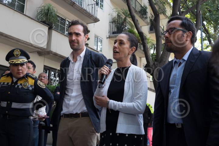 CIUDAD DE MÉXICO, 22ABRIL2019.- Andrés Lajous, secretario de movilidad; Claudia Sheinbaum, jefa de Gobierno y Víctor Hugo Romo, alcalde de MIguel Hidalgo, presentaron la entrada en vigor de las fotocívicas, las cuales aplican para multas por fotografía y automóviles particulares registrados en la capital. A partir de hoy, todas las placas contarán con 10 puntos que se irán restando dependiendo de la sanción cívica que se cometa. Los puntos se recuperan después de realizar trabajo comunitario o una platica de orientación sobre el Reglamento de Tránsito, si son más de siete puntos acumulados, el automóvil perderá su verificación. Las cámaras vehiculares se reubicaron en los puntos más conflictivos y con mayor afluencia de accidentes. Los funcionarios se dieron cita para dar el arranque del programa en el cruce de Darwin y Thiers, colonia Anzures, en la alcaldía Miguel Hidalgo. FOTO: GRACIELA LÓPEZ /CUARTOSCURO.COM