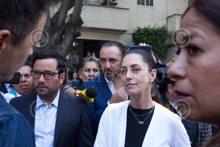 CIUDAD DE MÉXICO, 22ABRIL2019.- Claudia Sheinbaum, jefa de Gobierno y Víctor Hugo Romo, alcalde de MIguel Hidalgo, platicaron con los ciclistas que protestaron durante la presentación de la entrada en vigor de las fotocívicas, las cuales aplican para multas por fotografía y automóviles particulares registrados en la capital. A partir de hoy, todas las placas contarán con 10 puntos que se irán restando dependiendo de la sanción cívica que se cometa. Los puntos se recuperan después de realizar trabajo comunitario o una platica de orientación sobre el Reglamento de Tránsito, si son más de siete puntos acumulados, el automóvil perderá su verificación. Las cámaras vehiculares se reubicaron en los puntos más conflictivos y con mayor afluencia de accidentes. Los funcionarios se dieron cita para dar el arranque del programa en el cruce de Darwin y Thiers, colonia Anzures, en la alcaldía Miguel Hidalgo. FOTO: GRACIELA LÓPEZ /CUARTOSCURO.COM