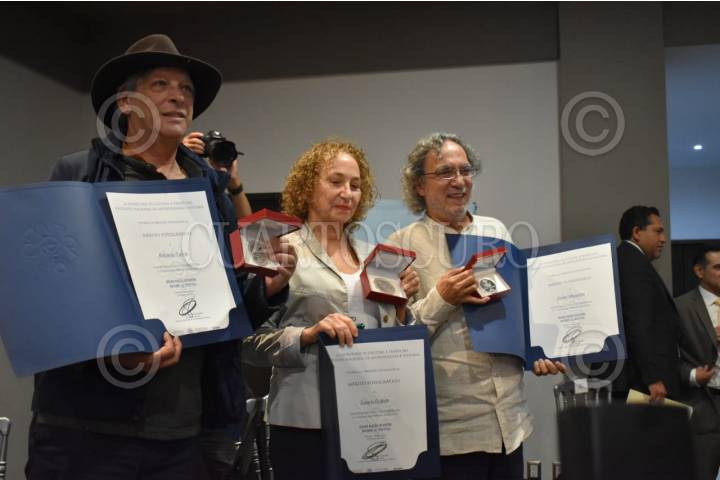 PACHUCA, HIDALGO, 23AGOSTO2018.- Los fotógrafos Antonio Turok Laura Cohen, y Javier Hinojosa recibieron la Medallla al Mérito Fotográfico, durante el Décimo Noveno Encuentro Nacional de Fototecas, realizado en la Fototeca Nacional. FOTO: LOURDES CORZO /CUARTOSCURO.COM