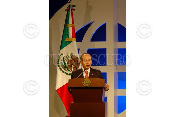 MÉXICO D.F., 30ABRIL2010.- El presidente Felipe Calderón durante el Foro de Líderes del Sector Público, América Latina y el Caribe, "Construyendo el Gobierno del Futuro" que se realizo n el Hotel Four Seasons. FOTO: RODOLFO ANGULO/CUARTOSCURO.COM