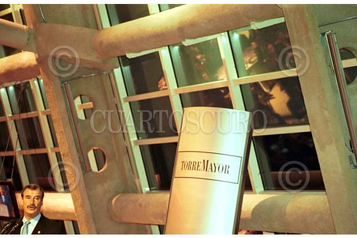 El presidente de México, Vicente Fox Quesada, durante su discurso de inaguración de La Torre Mayor que con 55 pisos se convierte en el edificio más grande de América Latina. FOTO: Eunice Adorno/CUARTOSCURO.COM