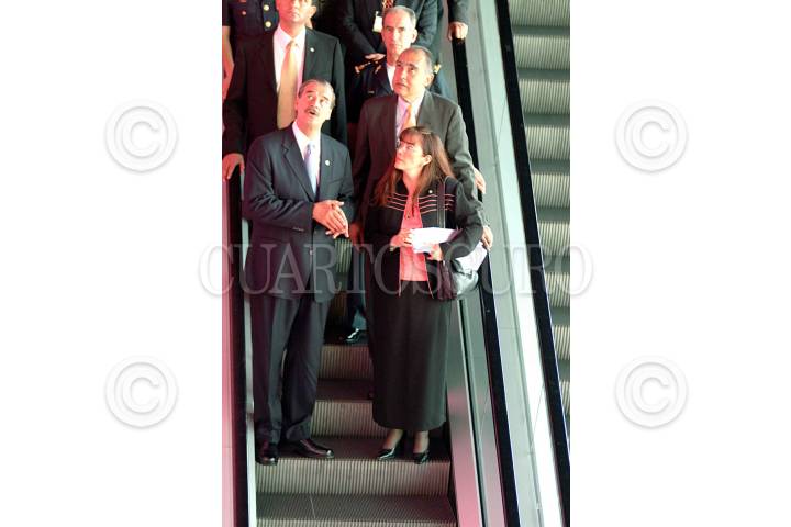 El presidente Vicente Fox acompañado de su esposa Martha Sahagún, Andrés Manuel López Obrador jefe de gobierno capitalino, y Pedro Cerisola, secretario de Comunicaciones y Transpores, durante la inaguración de la Torre Mayor en paseo de la reforma. FOTO: Eunice Adorno/CUARTO