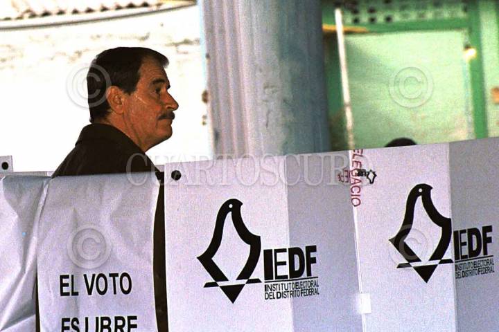 El presidente Vicente Fox esta mañana depositó su voto en la casilla 4990 instalada en la escuela primaria El Pípila. FOTO: Eunice Adorno/CUARTOSCURO.COM
