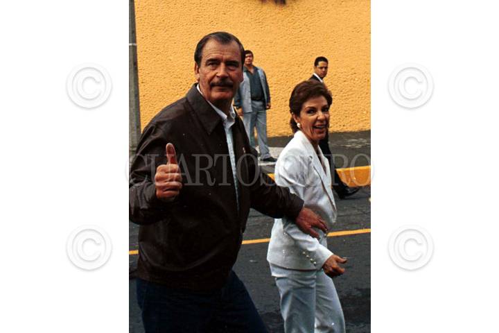 Luego de depositar su voto en la urna, alrededor de las 09:00 horas, el presidente Vicente Fox se retira con su esposa Martha Sagahún. FOTO: Eunice Adorno/CUARTOSCURO.COM