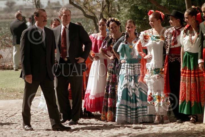 Ceremonia de bienvenida al rancho de San Cristóbal al primer mandatario de Estados Unidos George Bush por parte de la familia Fox. Foto: Victoria Valtierra/Cuartoscuro