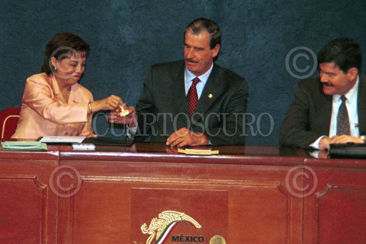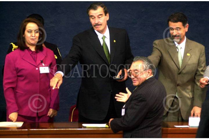 "A alguien se le cayó su medalla", dijeron el presidente Fox y el secretario del Trabajo, Carlos Abascal Carranza. FOTO: Pedro Mera/CUARTOSCURO.COM