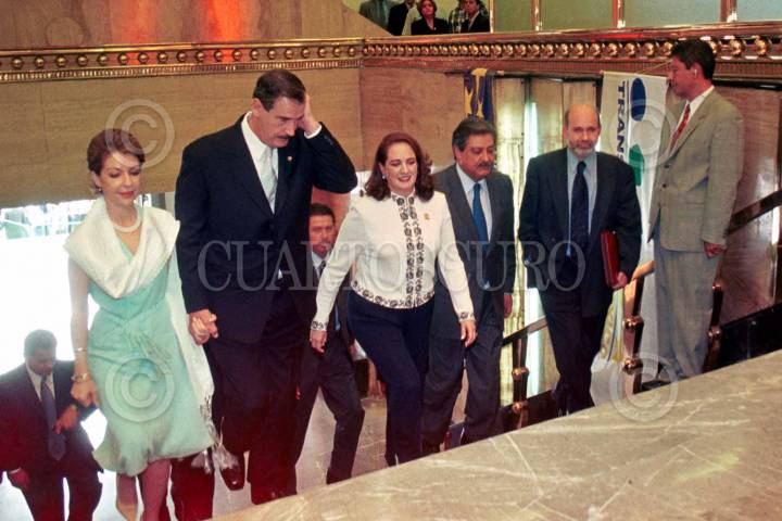 El presidente Vicente Fox y la Primera Dama Martha Sahagún de Fox, llegan al edificio de la Loteria Nacional para la presentación de un programa conjunto de apoyo a la niñez mexicana. FOTO: Pedro Mera/CUARTOSCURO.COM