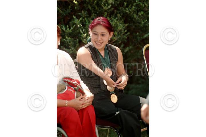 Doramitzi González, medallista de los Juegos Olímpicos y Paralímpicos de Sidney, durante una reunión con el Presidente Electo Vicente Fox. Foto: Pedro Mera/Cuartoscuro