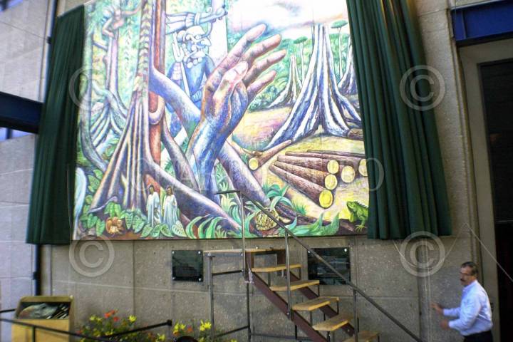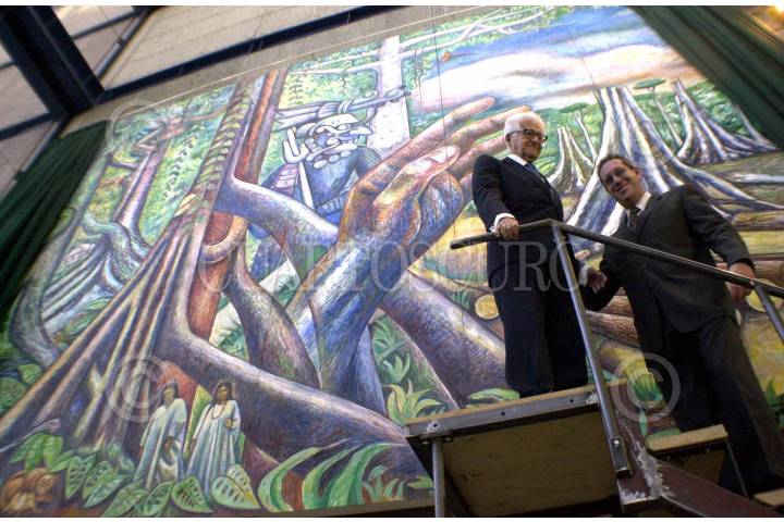 El presidente Vicente Fox fue el encargado de develar el mural "Proyección de la naturaleza", del pintor Raúl Anguiano, en la oficinas centrales de la Secretaría del Medio Ambiente y Recursos Naturales. FOTO: Pedro Mera/CUARTOSCURO.COM