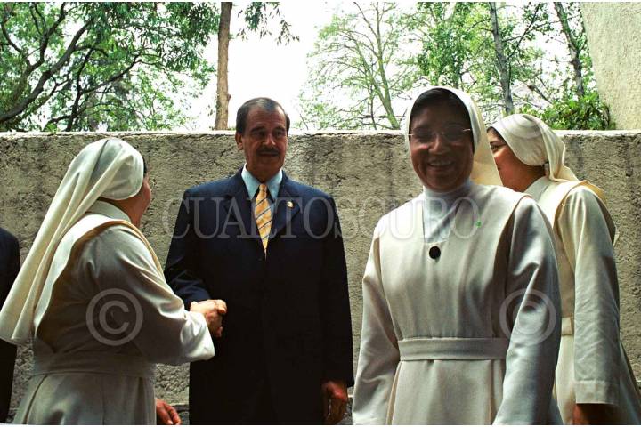 Vicente Fox Quesada, presidente de México, saluda a un grupo de religiosas al término del evento en donde se firmo decreto de la Ley Federal para Prevenir y Eliminar la Discriminación. FOTO: Eunice Adorno/CUARTOSCURO.COM