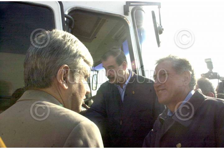 El presidente Vicente Fox y Andrés Manuel Lopéz Obrador, jefe de gobierno del DF, realizarón su primera gira de trabajo por distintos puntos de la capital, estuvierón acompañados por Arturo Montiel, gobernador del Estado de México durante la visita a la planta de bombeo del Gran Canal, en Ecatepec. FOTO:Oswaldo Ramírez/CUARTOSCURO.COM