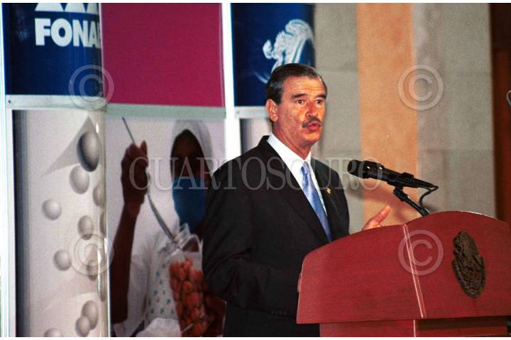 Vicente Fox, presidente de México, durante la inauguración del Encuentro Nacional de Empresas Sociales Exitosas, mencionó que durante su administración se impulsará de manera decidida a los pequeños negocios y que se fomentará la incorporación del que llamó ahora, sector "no estructurado" FOTO: Eunice Adorno/CUARTOSCURO.COM