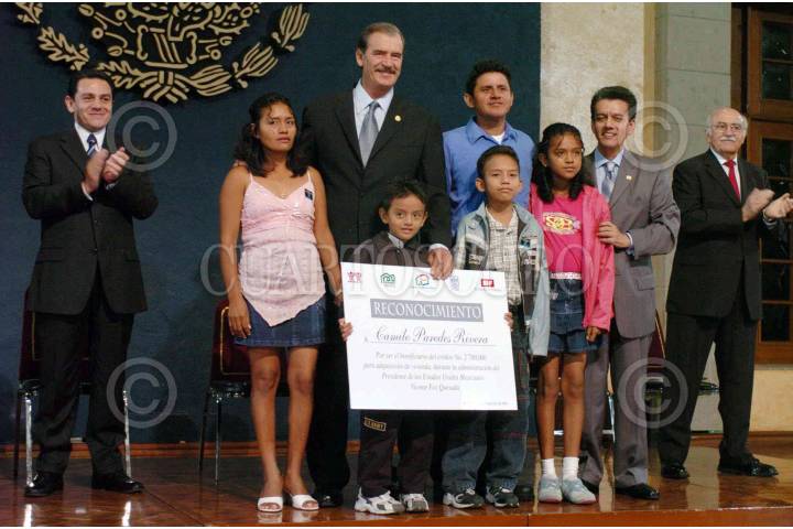 MÈxico, DF, 14 de septiembre de 2006. El Presidente Vicente Fox, durante la Entrega del CrÈdito 2, 700 000 para la AdquisiciÛn de Vivienda, a la familia del sr. Camilo Paredes Rivera, en el SalÛn Adolfo LÛpez Mateos de la Residencia Oficial de Los Pinos. FOTO: GUSTAVO BENITEZ/PRESIDENCIA/CUARTOSCURO.COM