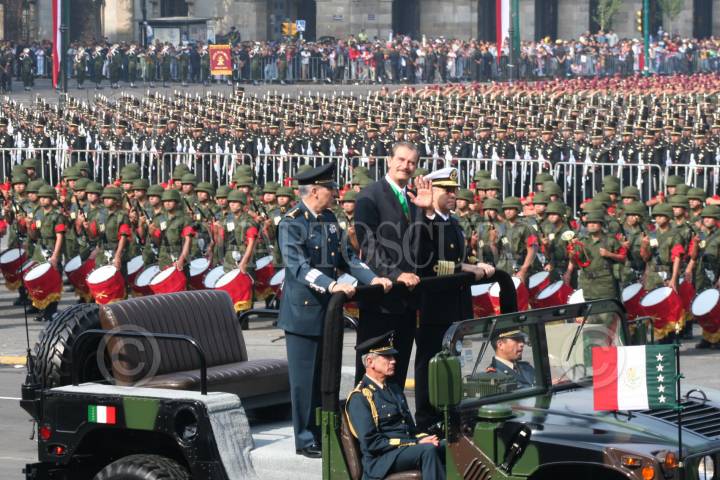 MÉXICO, D.F. 16SEPTIEMBRE2006.- El presidente Vicente Fox a su llegada a la Plaza del Zócalo, así dando inicio al tradicional desfile. En la imagen acompañado de el secretario de Marina, Marco Antonio Peyroy González. FOTO: PAOLA HIDALGO/CUARTOSCURO.COM