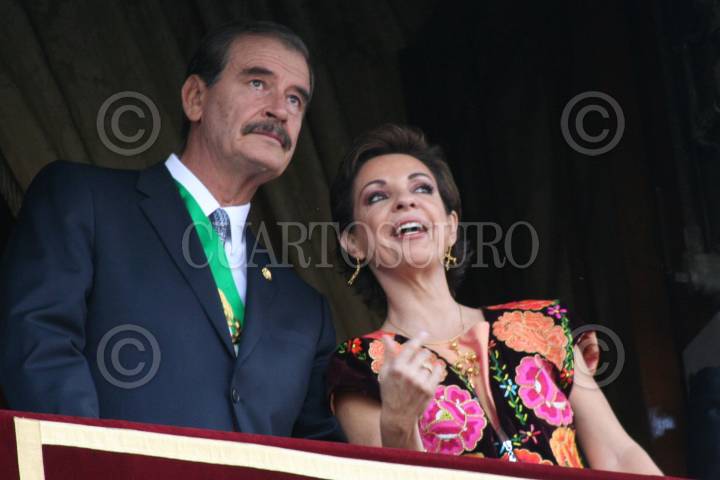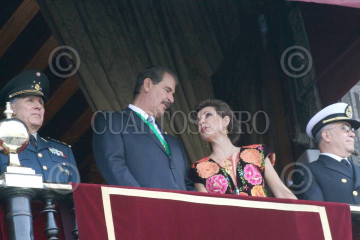 MÉXICO, D.F. 16SEPTIEMBRE2006.- Desde el Balcón presidencial, Vicente Fox, primer mandatario y Martha Sahagún de Fox, presenciando el desarrollo del tradicional desfile. FOTO: PAOLA HIDALGO/CUARTOSCURO.COM
