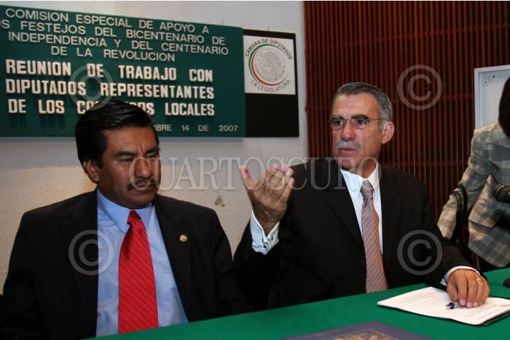 MÉXICO D.F. 14NOVIEMBRE2007.-Los diputados Carlos Martinez y Francisco Fraile, durante la reunión de trabajo de Comisión de Apoyo a los Festejos del Bicentenario de la Independencia y del Centenario de la Revolución, esto en las instalaciones de la Cámara de Diputados. FOTO: GUILLERMO PEREA/CUARTOSCURO.COM