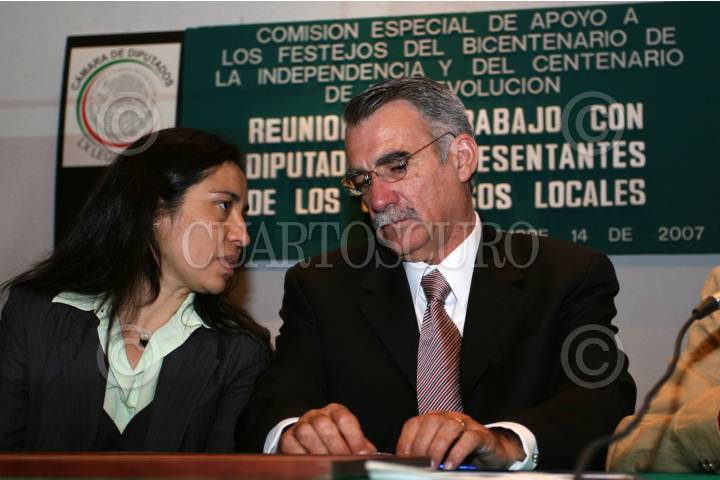 MÉXICO D.F. 14NOVIEMBRE2007.-La diputada del PRD Ruth Zavaleta y Francisco Fraile, dieron a conocer el billete conmemorativo por Festejos del Bicentenario de la Independencia y del Centenario de la Revolución, esto en las instalaciones de la Cámara de Diputados. FOTO: GUILLERMO PEREA/CUARTOSCURO.COM