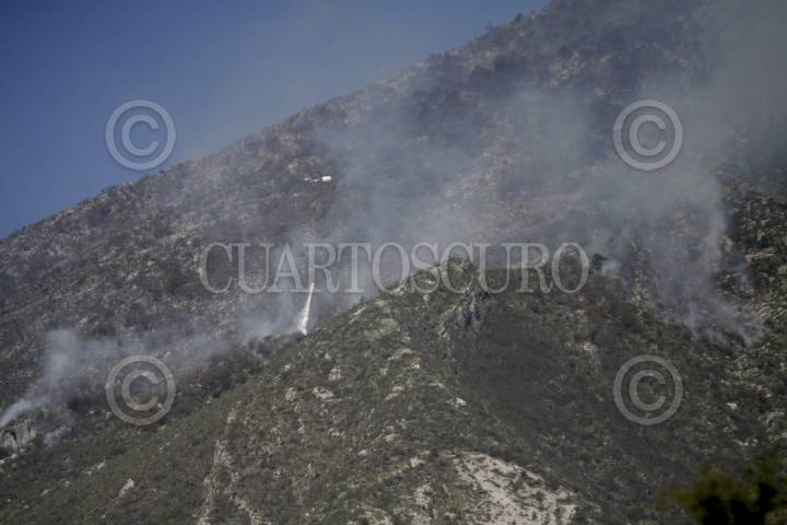 EL CARMEN, NUEVO LEÓN, 26FEBRERO2013.- Alrededor de 40 hectáreas han sido afectadas por un incendio en el cerro del Fraile al norte de Monterrey, hasta el momento Protección Civil del estado se ha encargado de atacar el siniestro vía aérea. Las labores continuarán por al menos 48 horas más. FOTO: GABRIELA PÉREZ MONTIEL /CUARTOSCURO.COM