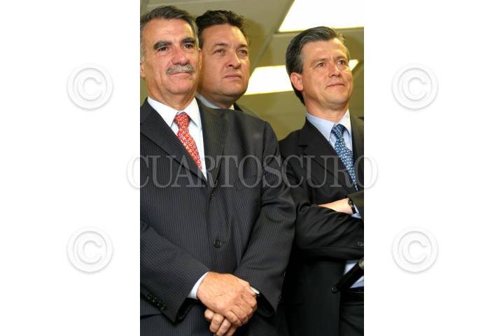 MEXICO D.F. 16MARZO2005.- Los senadores del PAN Francisco Fraile, Gustavo Cardenas y Gerardo Buganza, durante la conferencia de prensa en donde manifestaron su disgusto por los actos de propagandismo por parte del PRI en el estado de México con motivo de las elecciones. FOTO: Eunice Adorno/CUARTOSCURO.COM