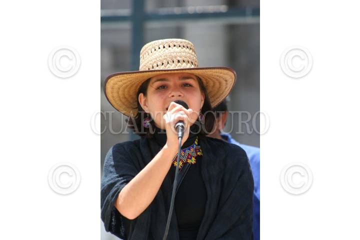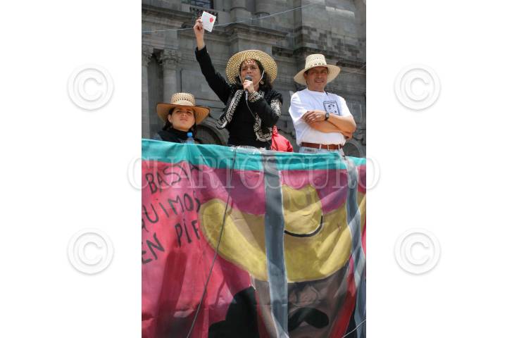 TOLUCA, EDOMEX, 25JULIO2006.- La actriz Francesca Guillen durante manifestacion en apoyo a los presos politicos que se encuentran recluidos en el penal de Santiaguito a causa de los enfrentamientos de San Salvador Atenco ocurrido el 3 de mayo pasado. Organizaciones civiles adherentes a La Otra Campaña y de Derechos Humanos se plantaron frente al Palacio de Gobierno en Toluca. FOTO: Moysés Zúñiga./CUARTOSCURO.COM