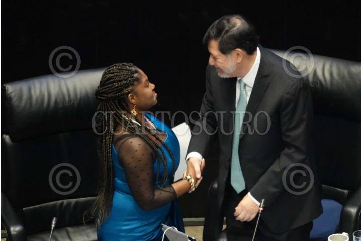 CIUDAD DE MÉXICO, 10ABRIL2025.- Francia Elena Márquez Mina, vicepresidenta de la República de Colombia, saludó a Gerardo Fernández Noroña, presidente de la Cámara de Senadores, durante su participación en la Sesión Solemne en el Senado de la República. FOTO: GRACIELA LÓPEZ/CUARTOSCURO.COM
